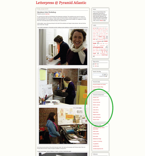 I realized that many of our regular letterpressers have websites, blogs or etsy sites that show their letterpress work (along with other stuff), so I decided to compile a list. Feel free to check out what everyone's been up to in and out of the studio! This list is by no means definitive - if you're a letterpresser at Pyramid and have a blog/site/etsy, please let me know!